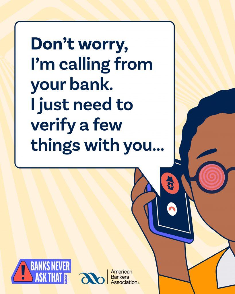Jewett City Savings Bank has partnered with the American Bankers Association to provide resources so you can better protect yourself and your finances through their annual Banks Never Ask That campaign.